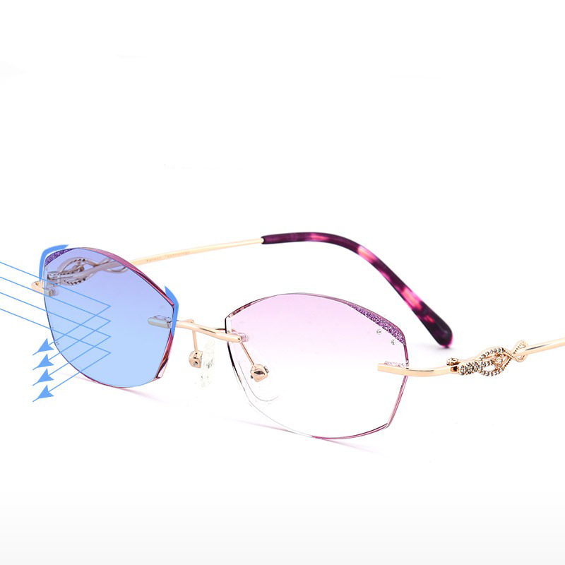 Elevate your style with our women's trendy ultra-light blue light blocking reading glasses. featuring dazzling diamond embellishments that infuse a touch of glamorous charm into your look. The exquisite diamond detailing adds a luxurious element to your eyewear. making them an ideal fashion accessory.