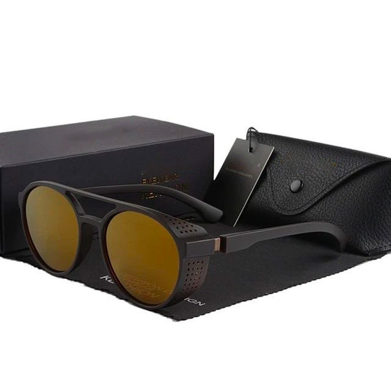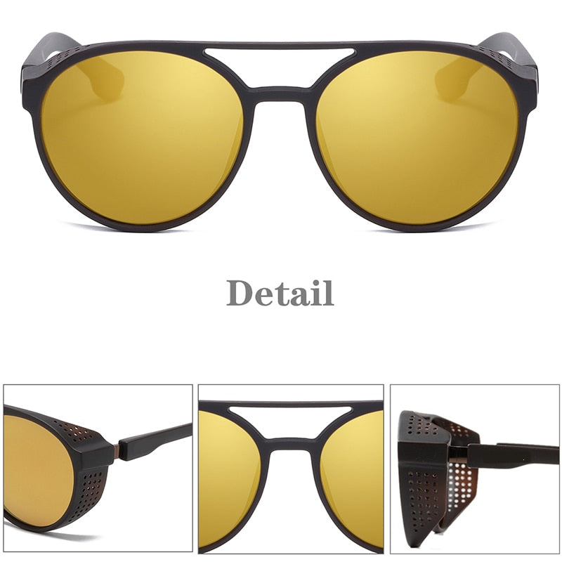 Men's Retro Round Polarized Steampunk Sunglasses HSQT209