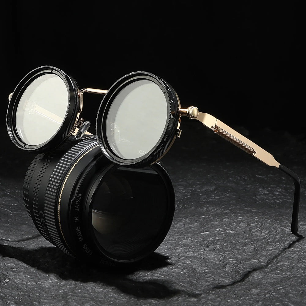 Perfect for those who love to mix vintage steampunk style with cutting-edge features. these sunglasses will keep your vision sharp and your look distinct.